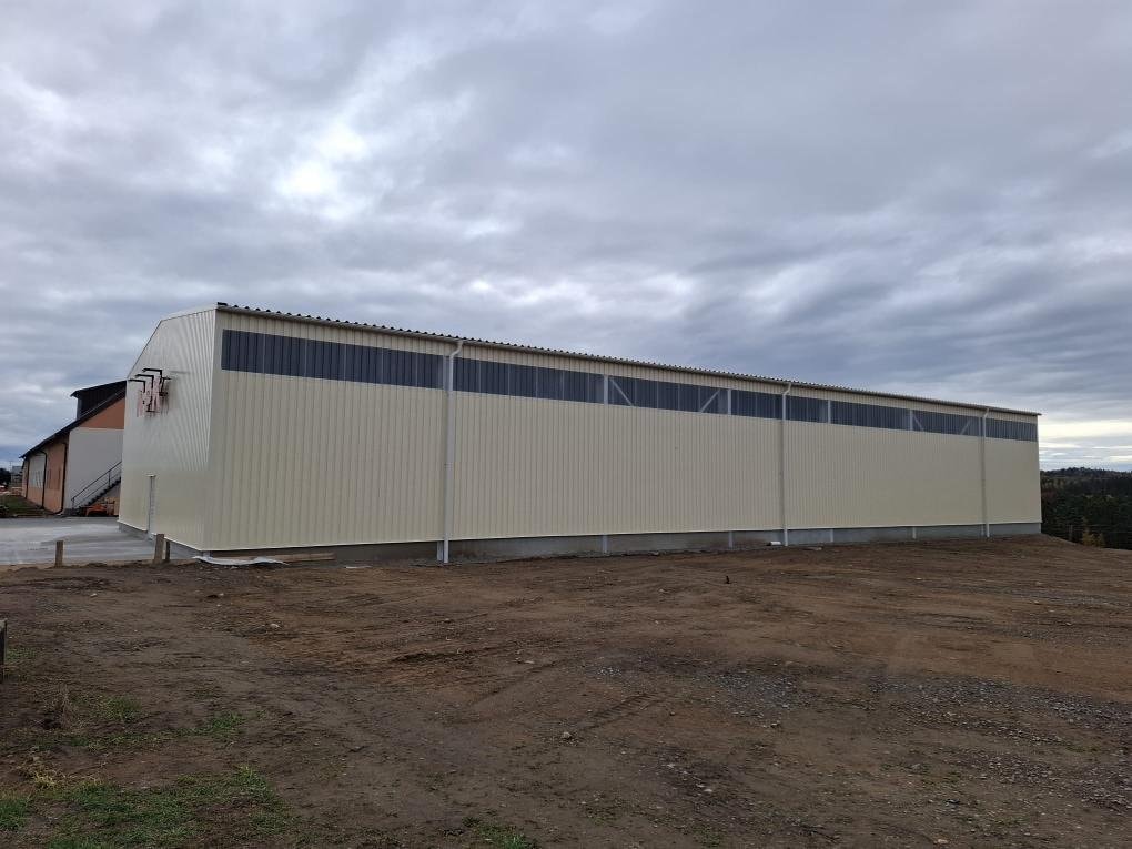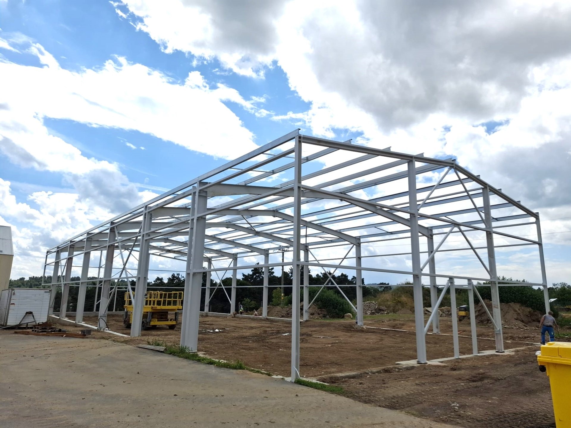 Pro firmu zabývající se produkcí demoličních a bouracích strojů a příslušenství jsme postavili jednopodlažní skladovací neizolovanou halu. Rámová ocelová konstrukce v barvě RAL 7035, založená na patkách. Opláštění fasády i střechy je trapézovým plechem tl. 0,6 mm na stěnách a 0,7mm na střeše s antikondenzační úpravou v barvě RAL 1015.