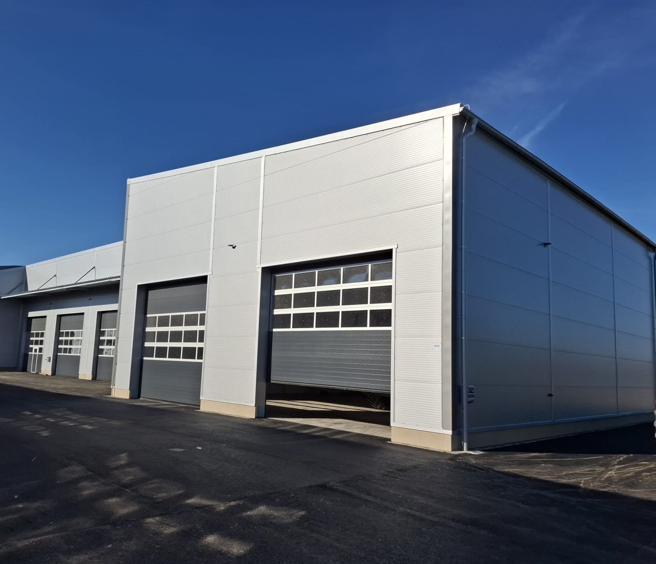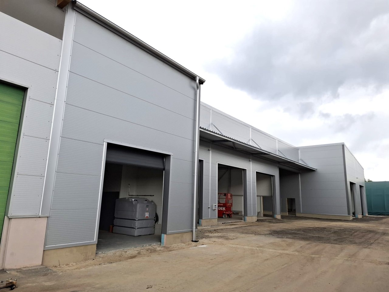 Přístavba nepravidelného obdélníkového tvaru ke stávajícímu objektu, rozdělená na čtyři části (bloky). Olejárnu se zázemím s patrovou vestavbou, druhý a čtvrtý blok jsou dílny a mezi těmito dílnami je zastřešený průjezd, ve kterém se uvažuje výhledově s myčkou. Objekt je založen na klasických patkách. V obou dílnách je osazena jeřábová dráha pro mostový jeřáb 5t. Střechy těchto hal jsou pokryty sendvičovými panely s tloušťkou jádra 140 mm s požární odolností REI 15 DP3. Fasádní opláštění je opět ze sendvičových panelů s pěnovým jádrem s požární odolností EW/EI 15 DP3, pouze v části napojení na stávající objekt je použito sendvičových panelů s minerálním jádrem z důvodů vyšší požární odolnosti EW/EI 30 DP1. Minerální panely tl. 120 mm s požární odolností jsou pak ještě využity uvnitř prvního objektu, kde tvoří požární příčky mezi olejárnou a zázemím. Objekt je laděn do exteriérové barvy RAL 9006 a z vnitřní strany pak RAL 9010. Ve střešním plášti do objektů dílen jsou osazeny pásové světlíky.