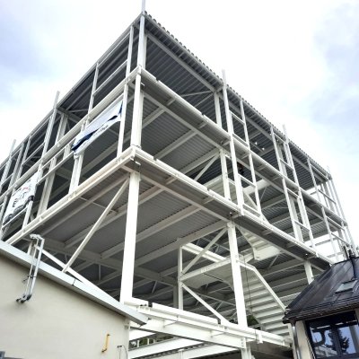 Dodávka a montáž ocelové konstrukce s opláštěním, klempířskými prvky a výplněmi otvorů.