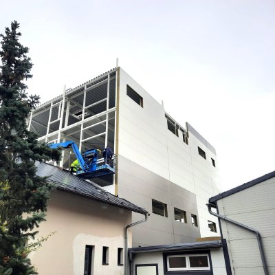 Pro společnost VETO ECO s.r.o. jsme vystavěli novou čtyřpatrovou výrobní halu v Kladně, která byla vestavěna mezi tři stávající budovy. 1NP je výrobní část, 2NP skladovací, 3NP slouží jako zázemí pro zaměstnance a 4NP bude využito jako administrativní část.
